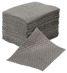 100 Premium weight General Purpose absorbent pads. For use on all non-hazardous workshop liquids. Strong wicking action for easy clean-up of everyday spills and leaks and tough, hard-wearing finish make these pads ideal for use in industrial applications. Central perforation for easy tearing and maximum economy.