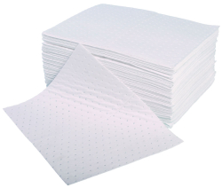 Medium-weight Oil & Fuel absorbent pads. For use on oil, fuel and solvents. Ideal for easy clean-up of everyday spills and leaks. Tough, hard-wearing, fine-fibre finish for use in industrial applications. Central perforation for easy tearing and maximum economy. Water repellent properties enable use in outdoor situations without absorbing rainwater.