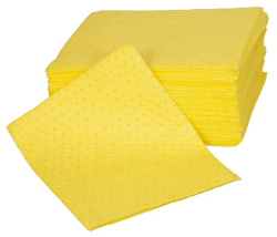 100 medium-weight chemical absorbent pads. Safely absorb acids, alkalis and strong chemicals for easy clean-up of hazardous spills and leaks. Tough, hard-wearing, fine-fibre finish for use in industrial applications. Central perforation for easy tearing and maximum economy. Ideal for bench-top use.