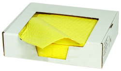 Dispenser box of 25 Premium-weight chemical absorbent pads. Safely absorb acids, alkalis and strong chemicals for easy clean-up of hazardous spills and leaks. Tough, hard-wearing, fine-fibre finish for use in industrial applications. Central perforation for easy tearing and maximum economy. Ideal for bench-top use.