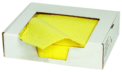 Dispenser box of 30 Medium-weight chemical absorbent pads. Safely absorb acids, alkalis and strong chemicals for easy clean-up of hazardous spills and leaks. Tough, hard-wearing, fine-fibre finish for use in industrial applications. Central perforation for easy tearing and maximum economy. Ideal for bench-top use.