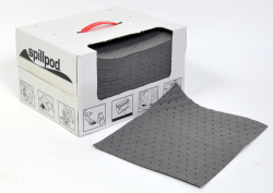 75 spillpod? General Purpose absorbent pads in dispenser box with carry-handle. Pads are easily accessed via the dispensing slot and the box can easily be transported via the convenient handle. Ideal for maintenance engineers and as a workbench maintenance and clean-up pack.