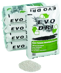 EVO DRI is an industrial absorbent comprised of 100% recycled gypsum in the form of granules (light grey colour). EVO DRI shows high absorption capacity, is easy to handle and transport, fireproof and can be used both indoors and outdoors.
