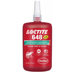LOCTITE 648 is designed for the bonding of cylindrical fitting parts. The product cures when confined in the absence of air between close-fitting metal surfaces and prevents loosening and leakage due to shock and vibration. It exhibits a robust curing performance. The product also works on passive substrates and offers high-temperature performance and good oil tolerance.