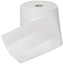 Premium-weight Oil and Fuel absorbent roll. For use on all hydrocarbons, including engine oil, lubricating oil, hydraulic oil, diesel and oil based solvents. Ideal for maintenance engineers. Strong wicking action for easy clean-up of everyday spills and leaks and tough, hard-wearing, fine-fibre finish for use in industrial applications. Perforated across width and along length for easy tearing and maximum economy.