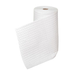 Plain Double-weight Rip & Place Oil & Fuel absorbent roll. For use on oil, fuel and solvents. Strong wicking action for easy clean-up of everyday spills and leaks. Easily covers large areas prone to overspray and under and around leaking machinery. Roll is perforated across width and along its length for easy tearing and maximum economy.