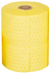 Plain Twinpack Medium-weight chemical absorbent roll. Safely absorbs acids, alkalis and strong chemicals for easy clean-up of hazardous spills and leaks. Easily covers large areas to clean up spills and leaks quickly and cleanly. Tough and hard-wearing finish for use in industrial applications. Perforated across width and along length for easy tearing and maximum economy.
