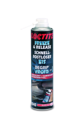 LOCTITE LB 8040 is a special mineral oil designed to free rusted, corroded and seized parts. The shock-freezing effect will cool parts instantly down to -43 °C and cause microscopic cracks in the layer of rust. This allows the lubricating ingredients to wick directly into the rust by capillary action. The product leaves a thin film on the released parts that lubricates and prevents rust.