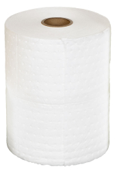Plain Twinpack Double-weight Rip & Place Oil & Fuel absorbent roll. For use on oil, fuel and solvents. Strong wicking action for easy clean-up of everyday spills and leaks. Easily covers large areas prone to overspray and under and around leaking machinery. Roll is perforated across width and along its length for easy tearing and maximum economy.
