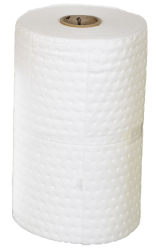 Plain Twinpack Double-weight Rip & Place Oil & Fuel absorbent roll. For use on oil, fuel and solvents. Strong wicking action for easy clean-up of everyday spills and leaks. Easily covers large areas prone to overspray and under and around leaking machinery. Roll is perforated across width and along its length for easy tearing and maximum economy.