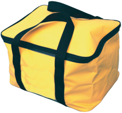 Small Yellow vinyl cube bag with zip closure and heavy duty straps. Clear window on top to display Spill Kit label.