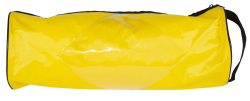 Small Yellow vinyl cylinder bag with zip closure. Clear window on one side to display Spill Kit label.